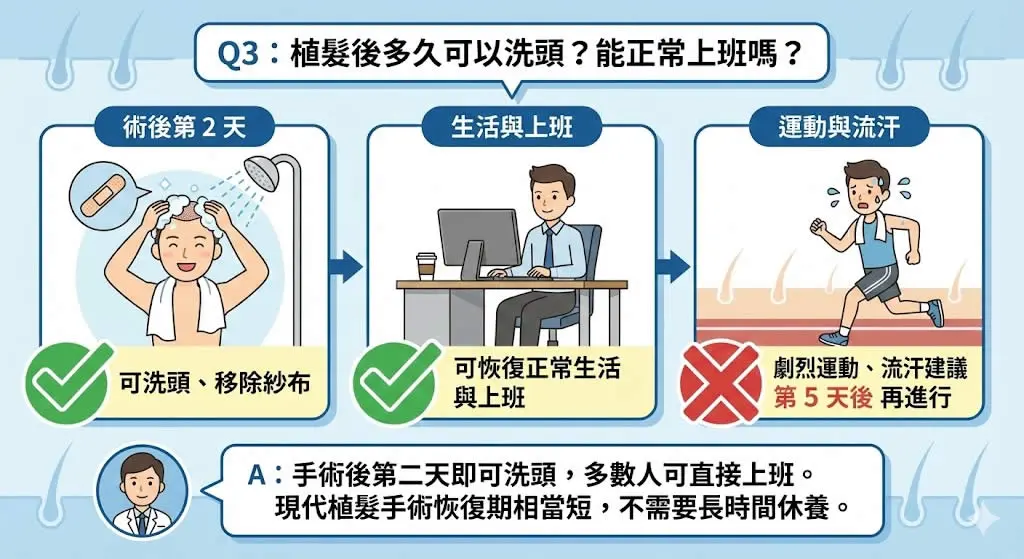 Q3:植髮後多久可以洗頭?能正常上班嗎?