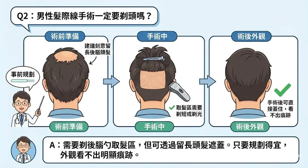 Q2:男性髮際線手術一定要剃頭嗎?