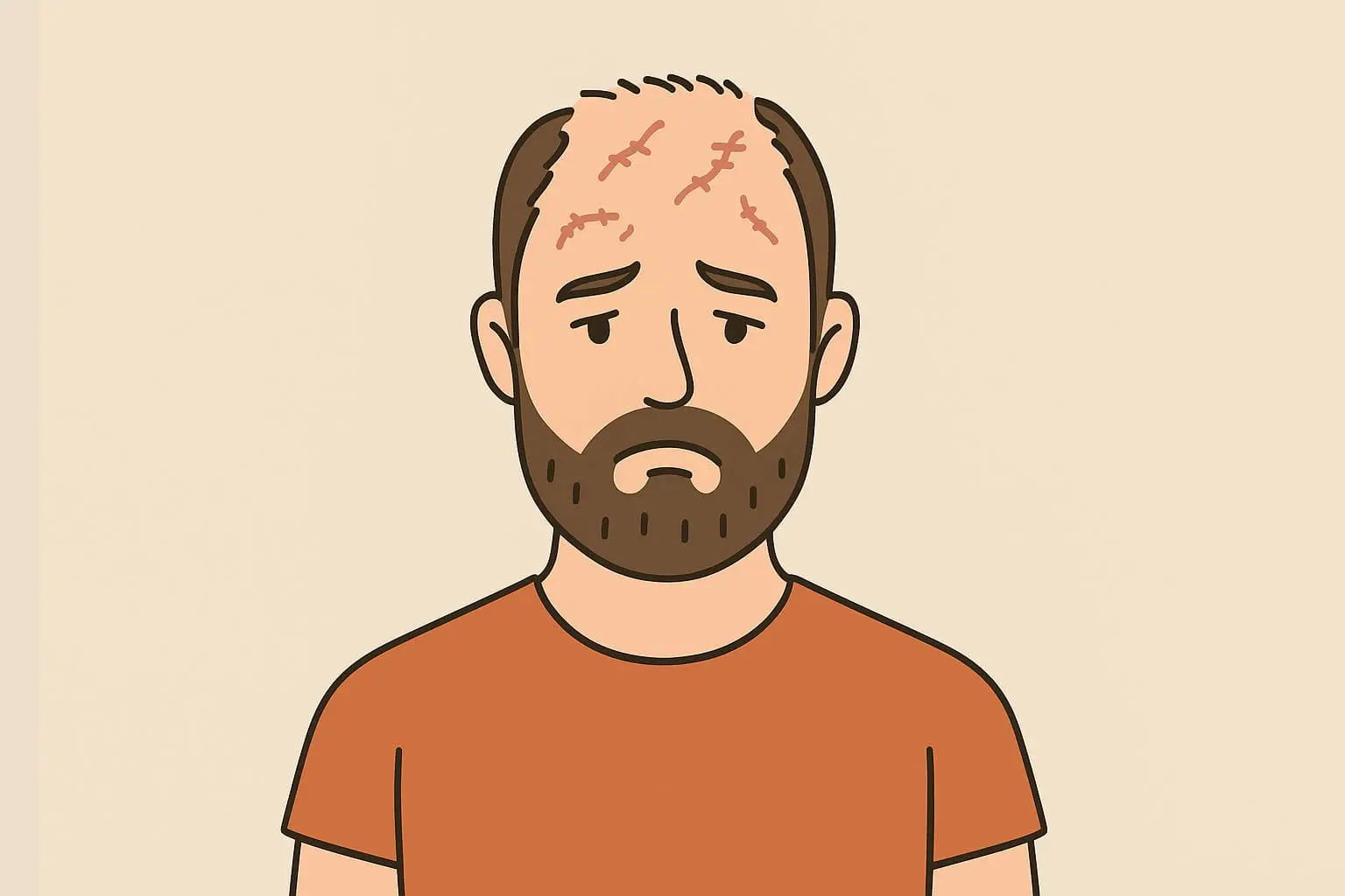 英國《鏡報》報導指出,英國男子路克赴土耳其進行廉價植髮手術,改善髮際線後退問題,沒想到手術「大失敗」,術後近六個月才長出少許頭髮,但頭皮滿佈的傷疤始終無法消除,該名男子氣得向診所投訴,最後僅要回三分之一退款,事後進行補救手術才讓頭皮恢復正常。