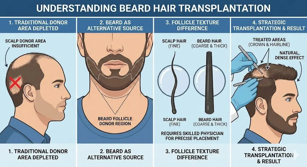 當頭皮毛囊資源有限時,鬍子毛囊可有效補充,避免因捐贈區不足而影響整體植髮成果。