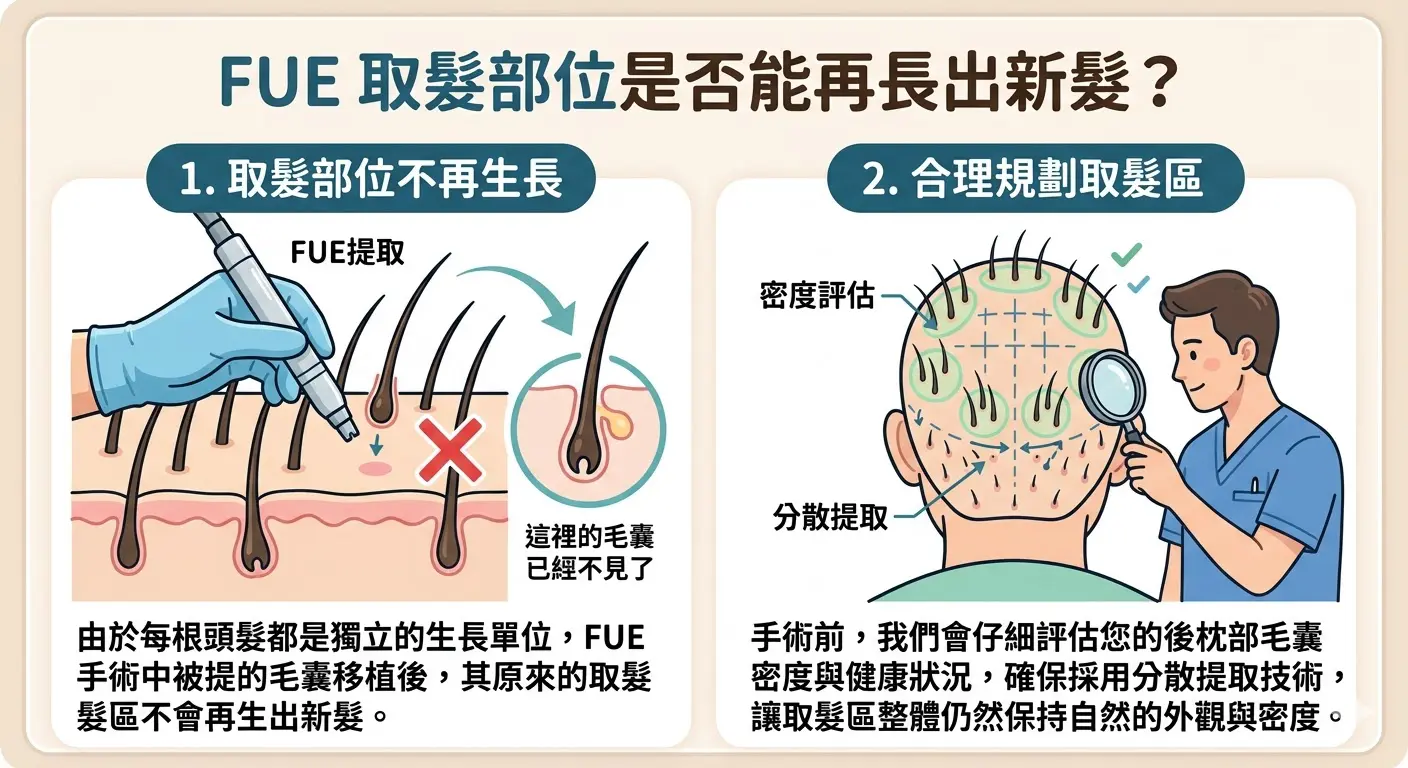 FUE取髮部位是否能再長出新髮?
