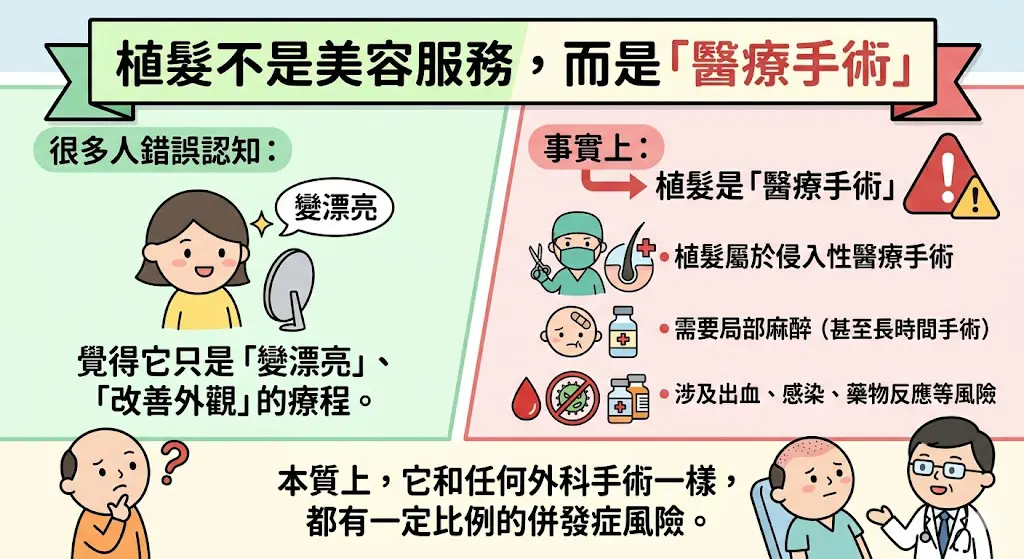 植髮手術最大的風險來自「麻醉與術中監測」,而非單純的種植技術。