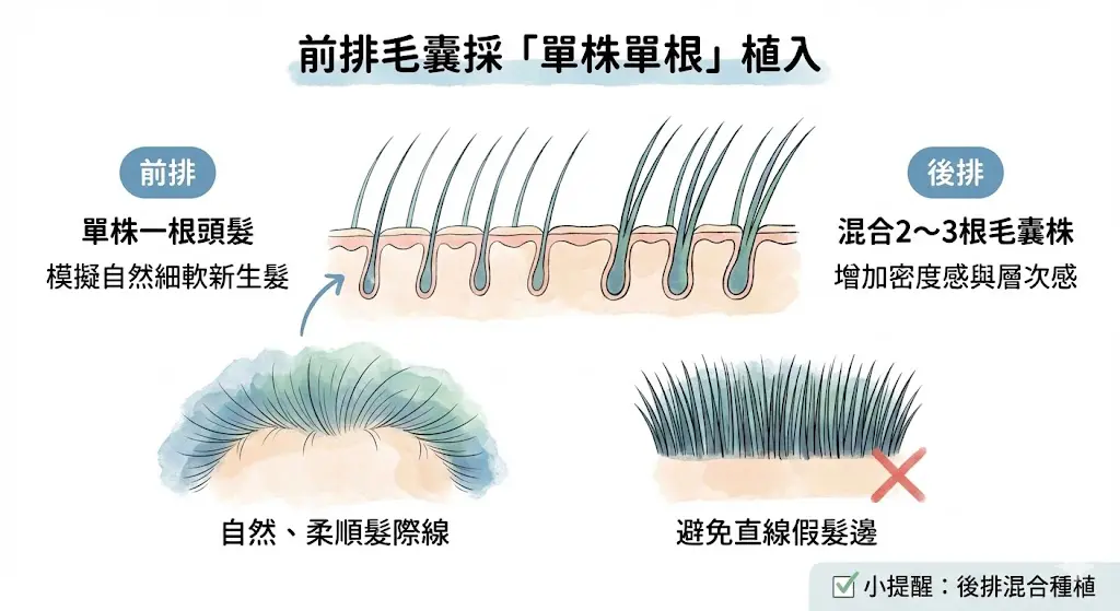 ✅ 小提醒:後排可混合2~3根的毛囊株,增加密度感與層次感。