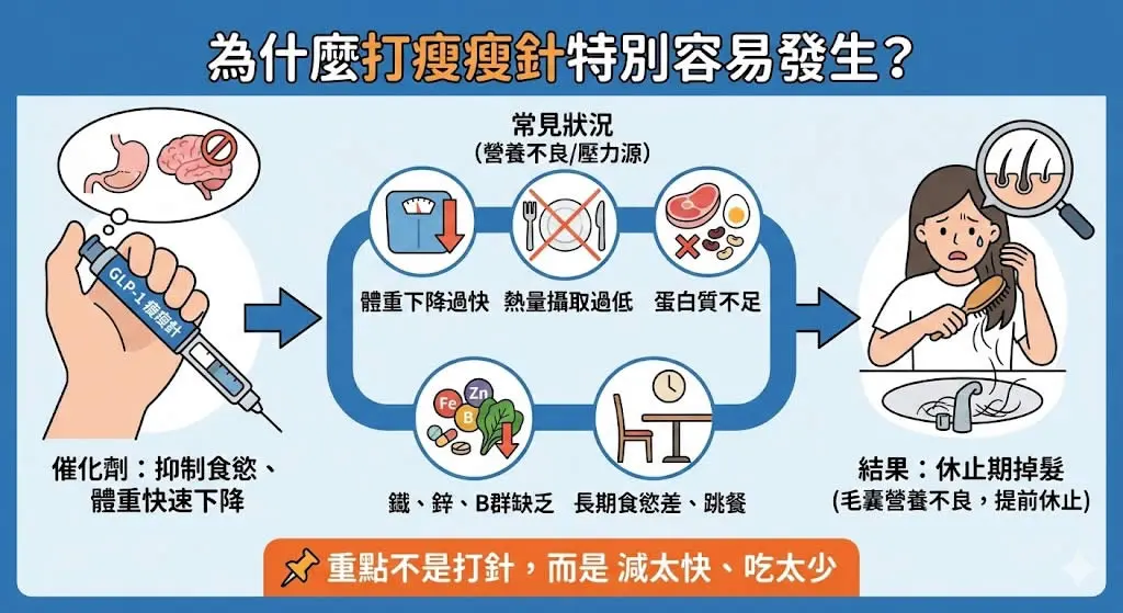 其實,多數情況並非藥物直接造成,而是身體對「快速減重」的反應。