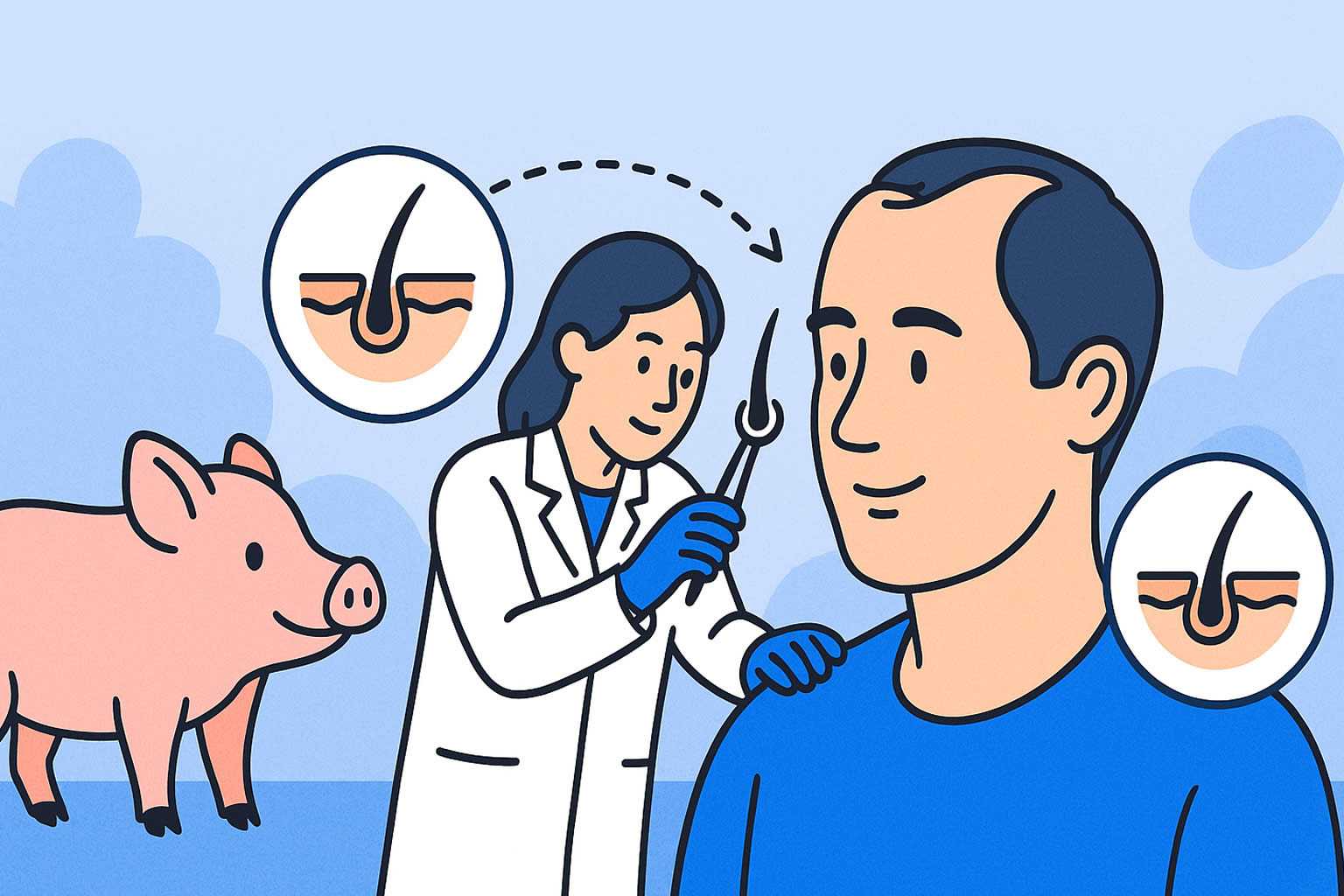 令人振奮的是,近期科學家已成功將基因改造豬的毛囊移植到人體,這項突破為未來的植髮技術帶來全新可能。不過,目前這些豬毛囊仍會引起排斥反應,患者仍需服用免疫抑制劑來控制排斥,尚未達到臨床實用的標準。