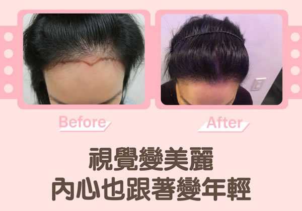 由於髮際線偏高會有男性化的感覺,髮線重塑之後,整體感覺會更柔和髮型更有變化,越加有女性的甜美。